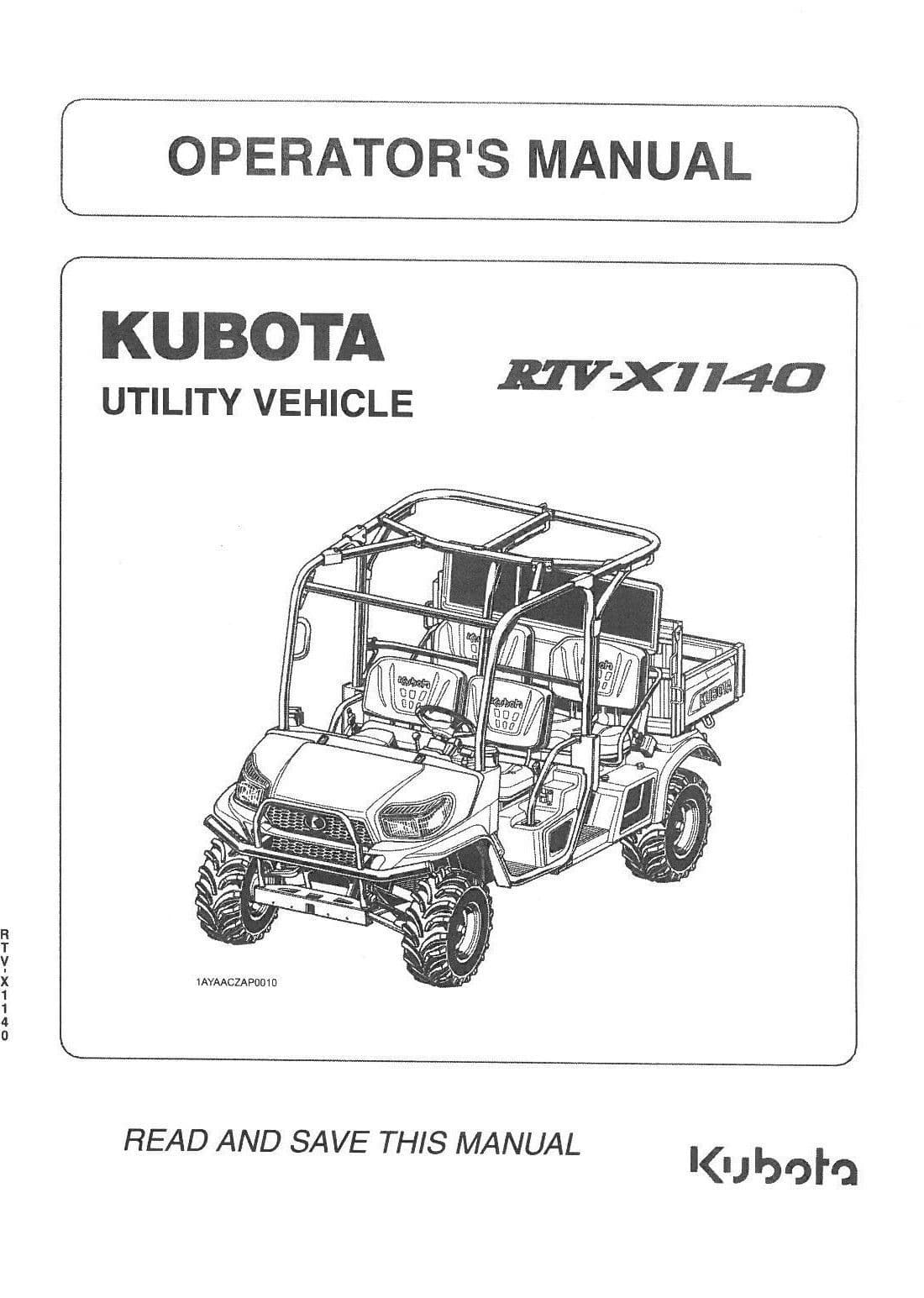 Kubota Utility Vehicle Rtv X1140 Operators Manual Rtv X 1140